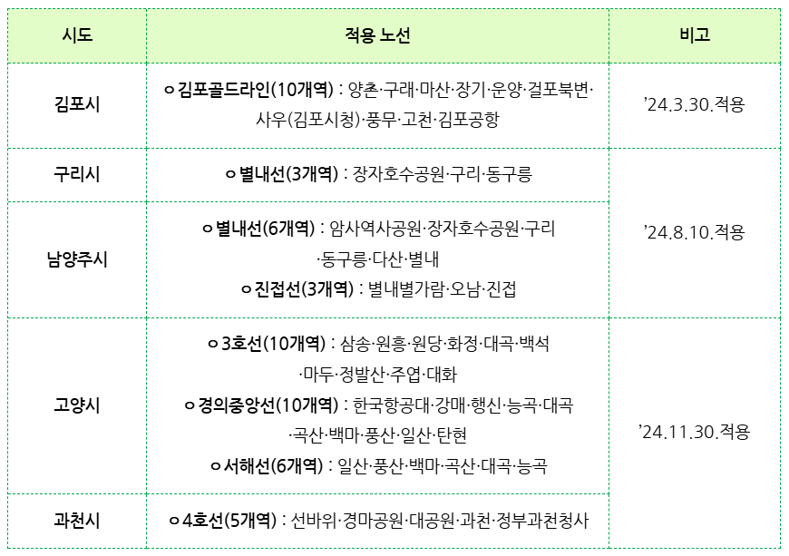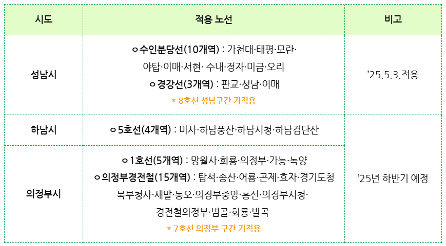 올해 하반기에는 하남시 5호선, 의정부시 경전철 및 1호선까지 확대될 예정이에요.