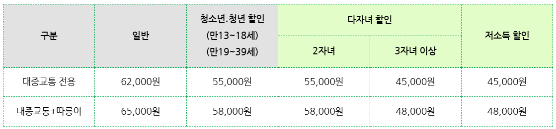 • 청소년·다자녀·저소득층 위한 할인 혜택도 풍성!