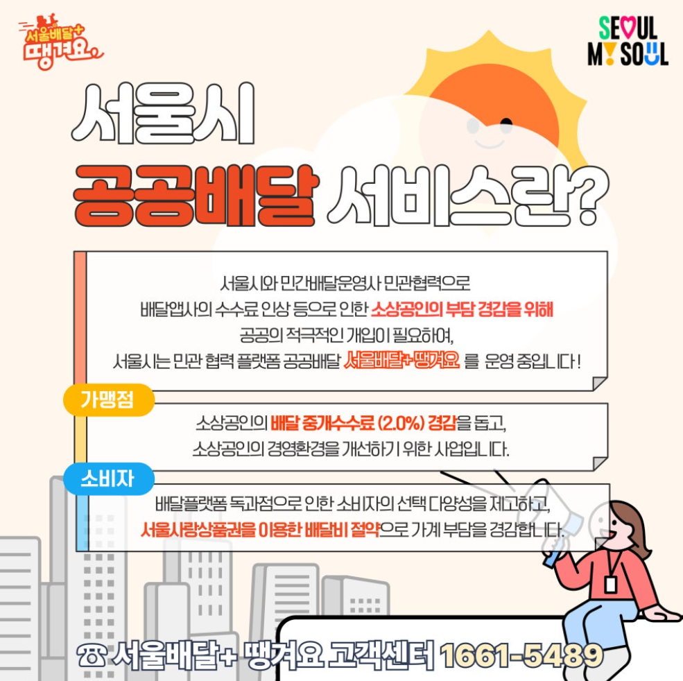 안녕하세요! 오늘은 서울시가 운영하는 공공배달 서비스 ‘땡겨요’에 대해 알아보려고 해요 😊