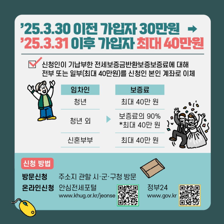 • ✅ 2025.3.31 이후 보증료 최대 40만 원까지 지원