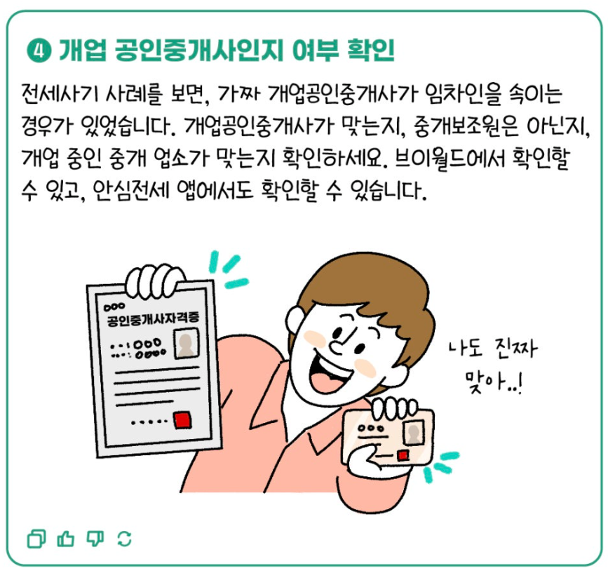 - 공인중개사 여부 확인, 전입신고·확정일자, 전세보증보험 가입