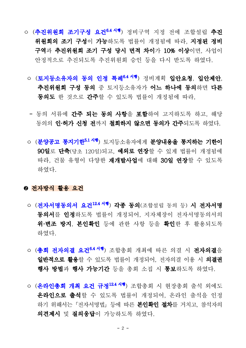 - 재건축진단, 추진위 구성, 동의 절차가 빨라지고 쉬워졌어요.