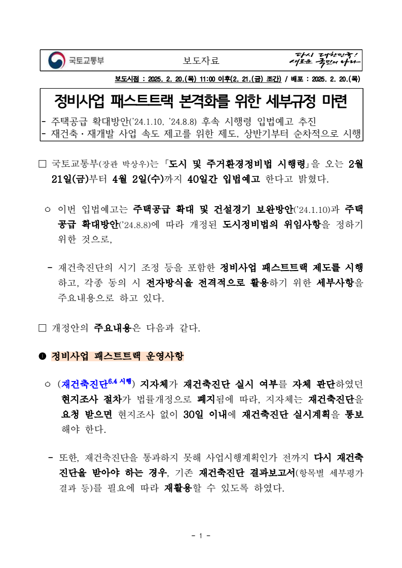 안녕하세요! 오늘은 주택정비사업 패스트트랙 세부 규정에 대해 알아보려고 해요.