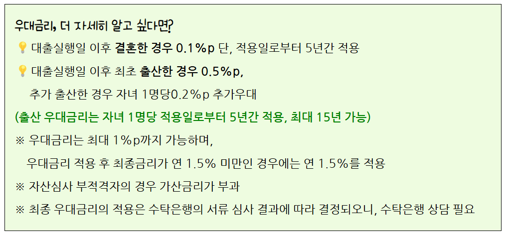 결혼 시 0.1%P, 출산 시 최대 0.7%P까지 우대받을 수 있어요.