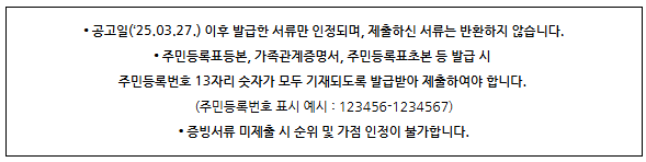 📎 유의사항: 서류는 공고일 이후 발급된 것만 인정돼요.