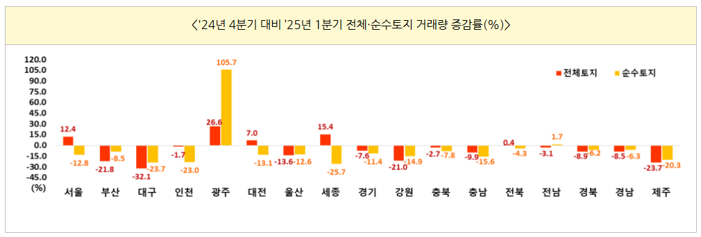 안녕하세요! 오늘은 최근 국토교통부에서 발표한 2025년 1분기 지가변동률과 토지거래량 소식을 살펴보려 해요.